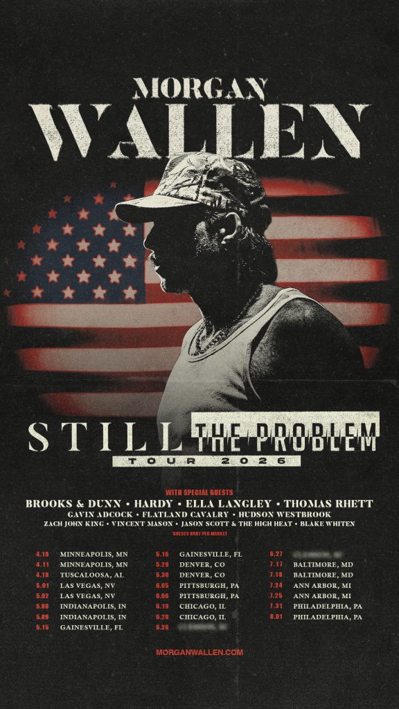 After wrapping up his record-shattering 2025 run, Morgan Wallen is ready to prove he’s still the problem – the good kind. The 19x Billboard Music Award winner today announced his massive “Still The Problem Tour” 2026, a run of 21 stadium shows that promises to be one of the biggest country tours of the year.